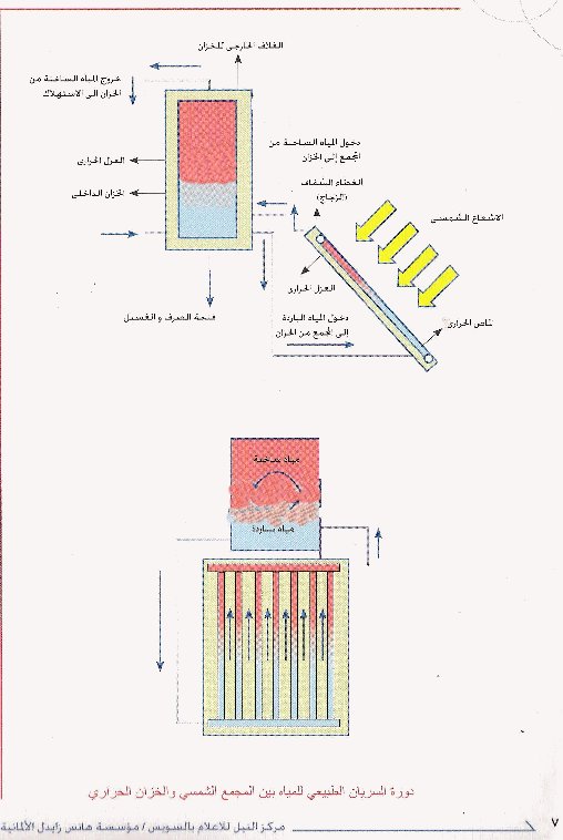 The picture above is remarkable because it contains misinformation that radically affects the performance of thermosiphoning solar hot water systems, and it seems nobody thought to test it. The picture is printed in a booklet that the wonderful Hans Seidel Stiftung (a German foundation) publishes and makes available to help people in Egypt learn how to make solar hot water systems. The fact that they have gone to the trouble of not only printing and distributing these great informational booklets but of supporting workshops in the Suez area to train locals how to create home-made domestic solar hot water systems is more than laudable. The Hans Seidel Foundation is one of the best organizations out there, working on everything from solar technology implementation to biogas production from waste.