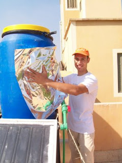 Connie's assignment was what we call "The Solar C3ITIES Solar Challenge": Learn how to build -- and then actually build ! -- a practical solar hot water system -- from scratch, out of local and recycled materials found in small mom-and-pop markets and in garbage dumps -- and install it on the home of at least one poor Cairo family. Her "aufgabe" (homework): Create a clear, illustrated manual in her native language (to be translated into English and Arabic) that could help others around the world to do the same thing.