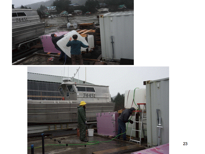 Cut the top off of the 1000 liter barrel so that 750 liter barrel can fit inside it upside down with about 1/2 inch to spare. This tank becomes what we call our artificial "cow's stomach".